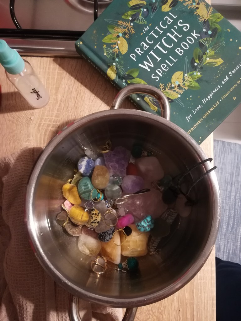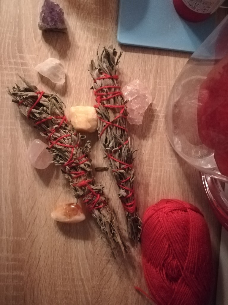 Most of the guides to witch-craft which I have read start you off with a list of objects you can make you own magical tools. Firstly, you’ll need to source a broom and a knife/dagger. These are the two most important objects in a beginner witch’s kit. The broom is for the first reason stated above, to clean. Cleaning on a spiritual level means transmuting and shifting energy. The image of the witch on a broom, snarling and cursing at the moon is a sexist one propagated by the mostly Christian patriarchy to dissuade women from owning their powers and practice the craft, but the broom was from the beginning merely the symbol of grounding and cleansing and it is essential that you also own one – it can be in any shape or form (a fine feathered cleansing broom, or a more traditional and bigger straw one). Avoid using the vacuum cleaner or roomba if you can, at least around your altar because it could accidentally aspire some of your crystals, runes or flower petals (it could also aspire some tarot cards and unnecessarily bend them). The knife is important in chord-cutting rituals, in scrying, in spell-baking, and to help you unpack and bless new tarot and oracle decks. Other tools include you Book of Shadows, your herb bundles (Palo Santo and Sage), a fumigation shell/receptacle, you lighter and candles, your incense sticks and incense burner, your crystals, your singing bowl/bell/wind chimes, your crystal jewelry and even your magick wand. I like to re-use ice-cream plastic containers and food glass jars, empty wine or cider bottles to keep and store my tools, because in this way it is more eco-friendly.