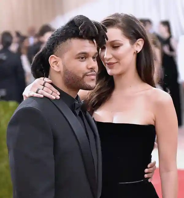 The Weekend with Bella Hadid in Givenchy at the Met Gala in 2016. More here: https://www.huffpost.com/archive/ca/entry/met-gala-2016-the-weeknd-and-bella-hadid-go-matchy-matchy-in-gi_n_9825436