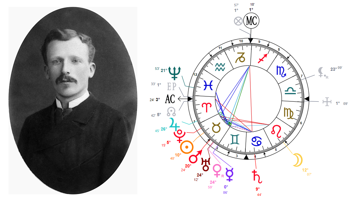 We notice that Vincent is a Sun in Aries in the 10th house (so he borrows traits from Capricorn energy), he has a Moon in Sagittarius in the 6th house (so with a Virgoan influence) and an Ascendant in Cancer (which makes his Descendant in the sign of Capricorn). His Sun is also conjunct Mercury and the Part of Fortune, while his Moon sits with Jupiter and the South Node (wow!). Immediately, we spot a considerable influence from Fire and Water signs in his chart which are anchored in Earth houses (the 6th and the 10th houses) and while these may be balancing influences, they nonetheless tell the story of a highly sensitive & spiritual soul, simultaneously endowed with ambition and an Ego build around his public achievements. Vincent was a highly creative person who preferred to work alone and had a tendency to emotionally exagerate and sweat over the small things in life, the daily details of his life (Moon in the 6th).