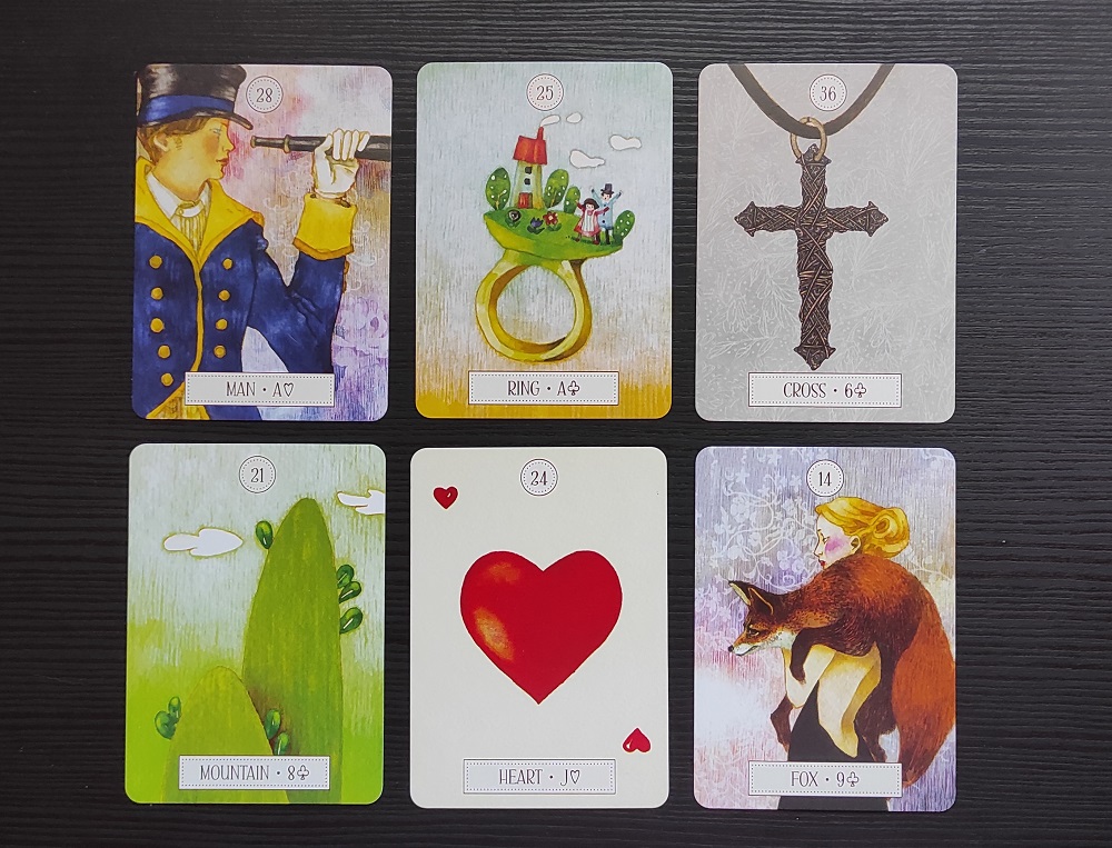 ⬇️ Un exemplu de 6 carti Lenormand din setul ‘Surprinde-ma!’ ⬇️ (pozele vor varia)